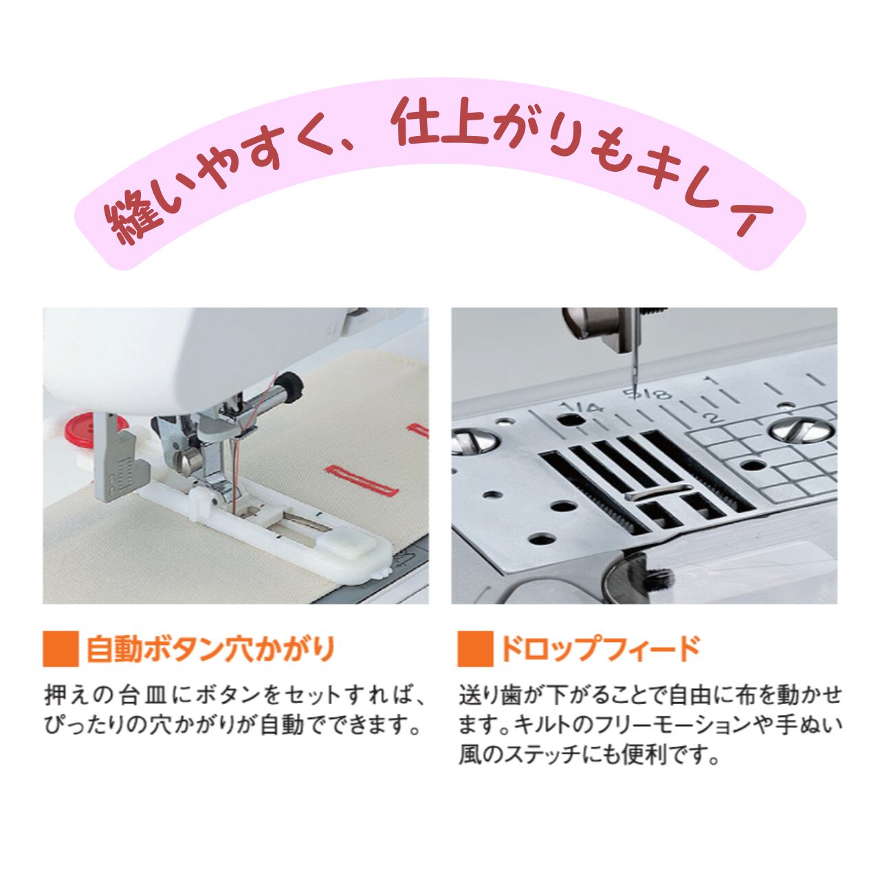 軽量で持ち運びラクラク、初心者にぴったりのコンピューターミシン。実用縫い20模様を搭載し、ボタン穴かがりも自動でできる充実のステッチ。コンパクトなミシンですが、多種多様な用途にしっかり使えます。