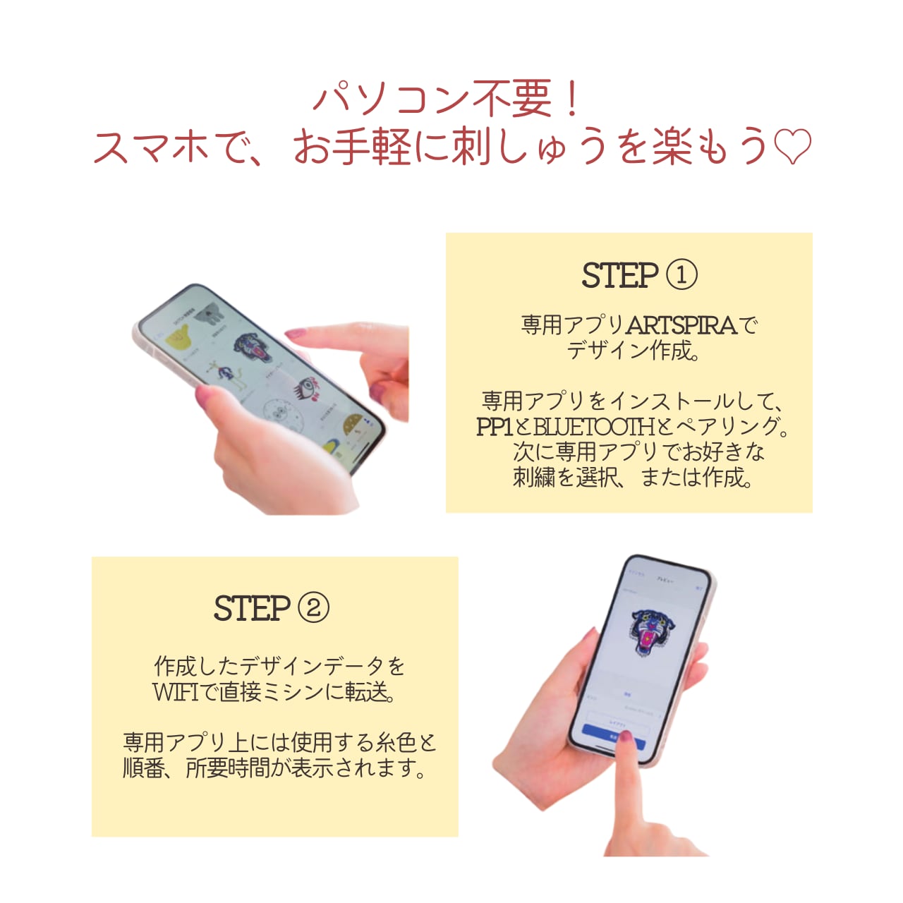 スマホで簡単!自由自在に刺しゅうを楽しもう♪インテリアに馴染むコンパクトでスタイリッシュなデザインの刺しゅう専用機「SKiTCH PP1」。専用アプリArtspiraを使って、スマートフォンやタブレット上でお好きな刺しゅうをデザイン。パソコンを使わなくとも刺しゅうできます。手軽に刺しゅうを始めてみたい方におススメの一台です。