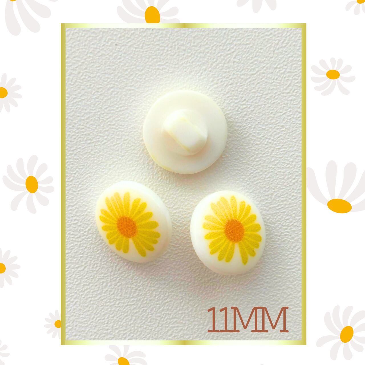 デイジーのお花のプリントがついたボタンです。小さめボタンで、お洋服にはもちろん、小物や工作にも幅広くご活用できます。